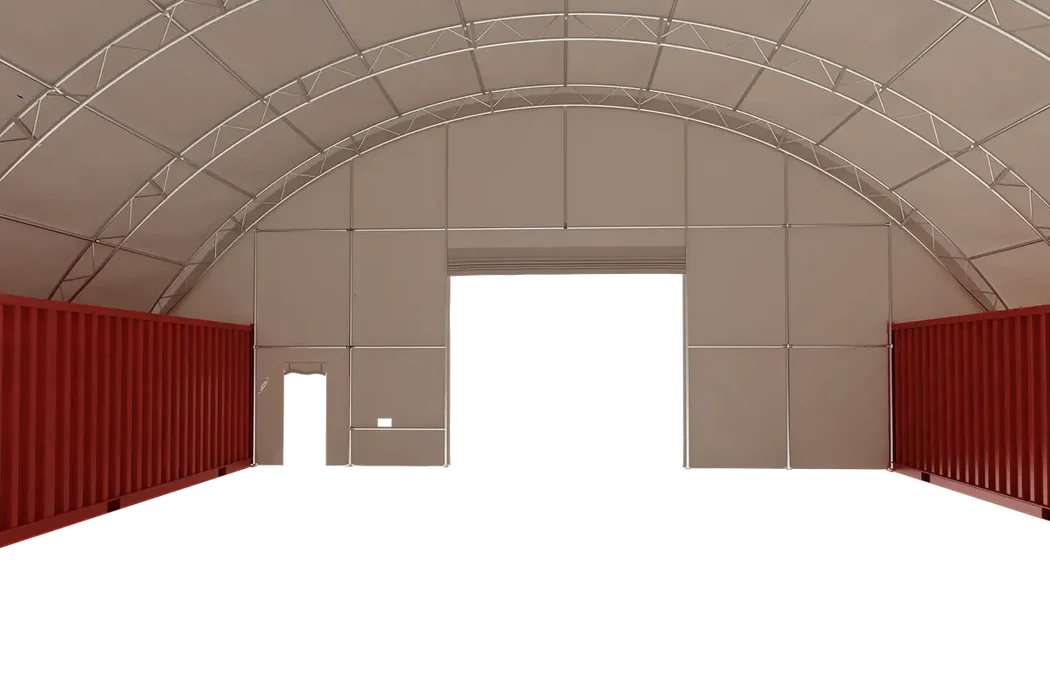 Container Shelter 60’x40’x20′ (610g PVC) Double Trussed